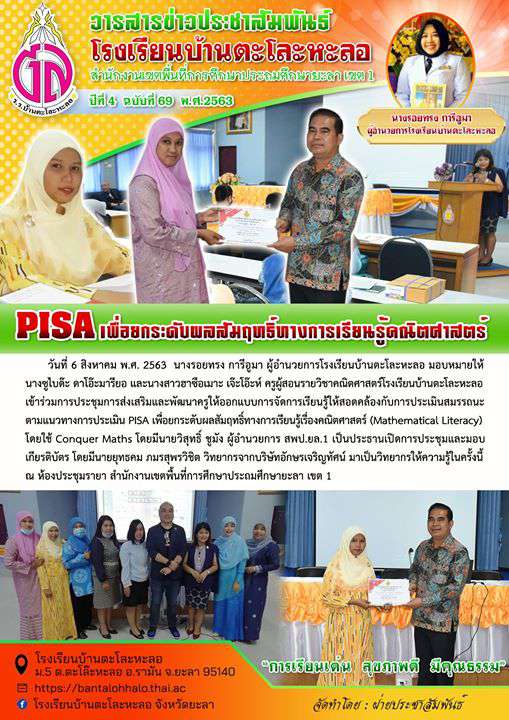 " ข่าวประชาสัมพันธ์โรงเรียนบ้านตะโละหะลอ สพป.ยะลา เขต 1 ## ปีที่ 4 ฉบับที่ 69 พุทธศักราช 2563 ## PISA เพื่อยกระดับผลสัมฤทธิ์ทางการเรียนรู้คณิตศาสตร์ " ^^