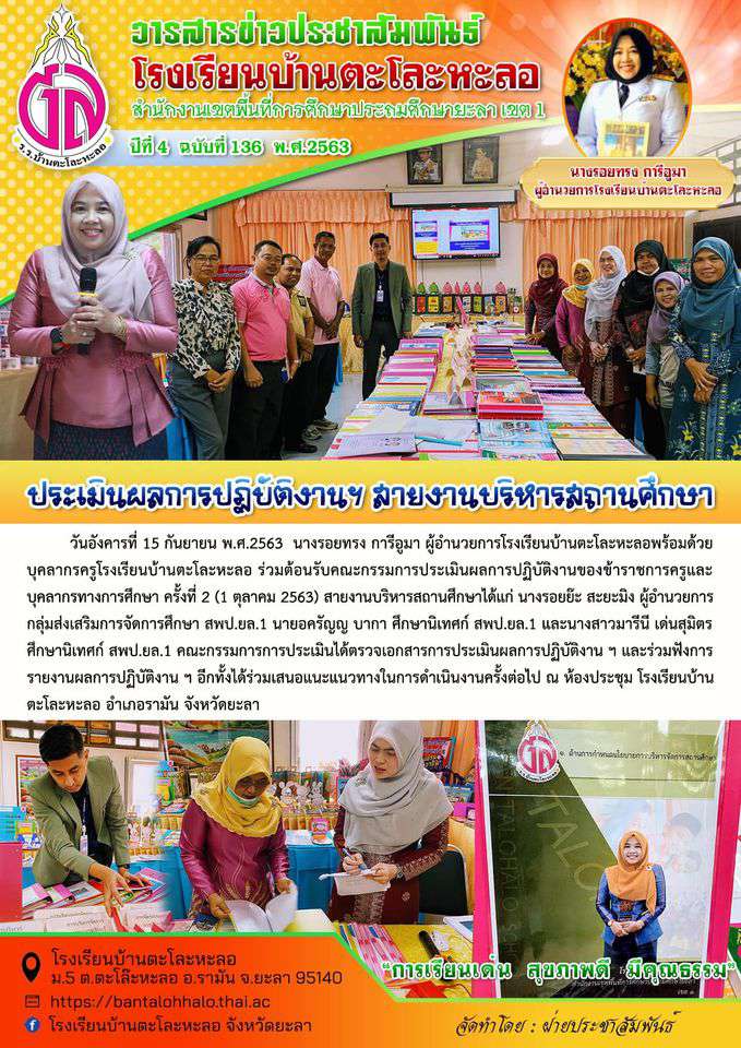 รับการประเมินผลการปฎิบัติงาน สายงานบริหารการศึกษา ณ โรงเรียนบ้านตะโละหะลอ จังหวัดยะลา